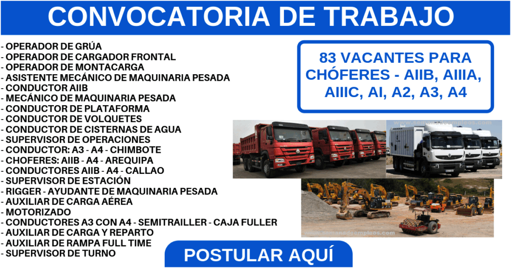 Gracias por tu interés, esperamos ayudarte con lo que buscas ya que nuestro compromiso es ayudar a mayor cantidad posible de desempleados que cada día desean mejorar su calidad de vida, si estas listo para postular es importante que veas la lista de vacantes y postules por tu cargo.
